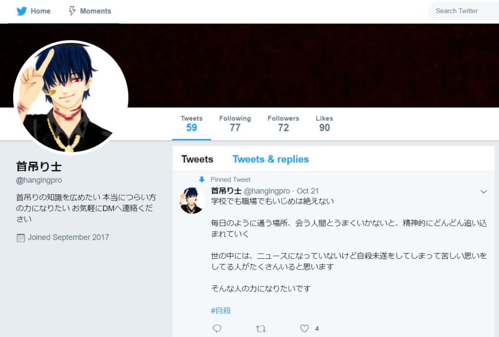 Twitterアカウントを開設して「自殺したい」などと嘘のツイートをし、自殺願望を持つ女性たちと交流。Twitterでメッセージを送った女性らを自宅に招き入れ、睡眠薬・酒を飲ませた後に、ロフトから垂らしたロープで首を吊って絞殺した。