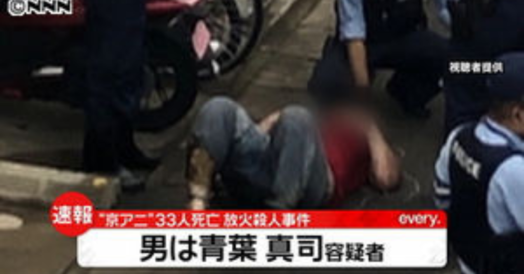 | 内容 | 京都アニメーション第1スタジオに青葉真司(当時41歳)が侵入 バケツからガソリンを建物1階にまいてライターで着火し爆発し、建物を全焼 |