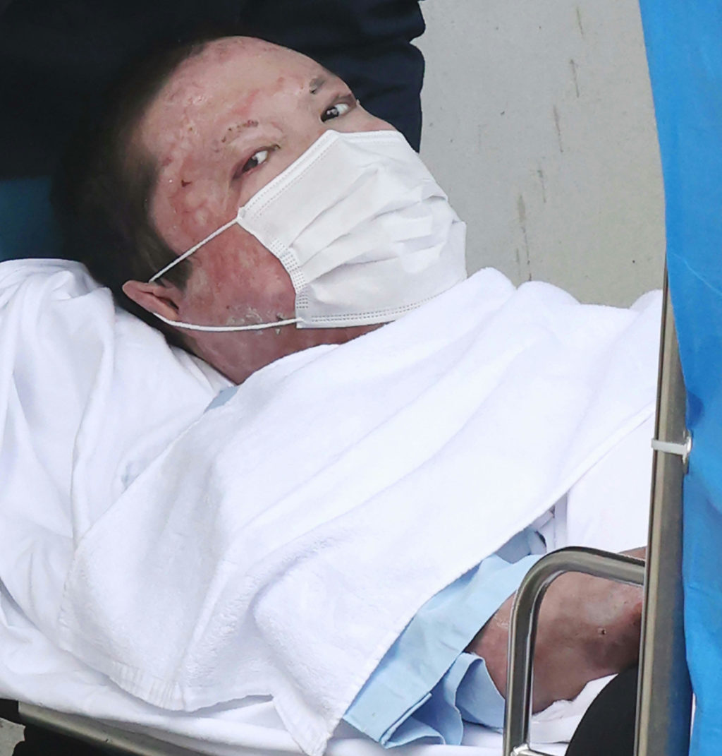 青葉は事件で全身に大やけどを負っている。その火傷は予測死亡率95%と言われた。