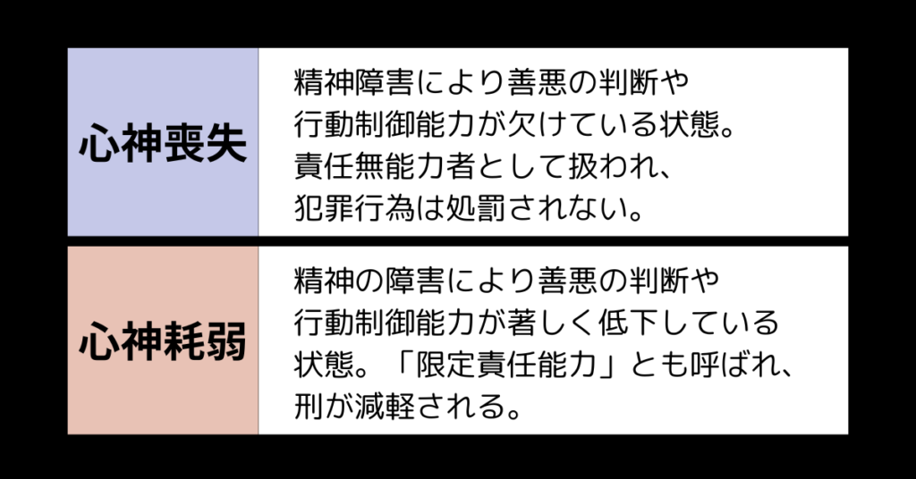 何らかの精神障害と病院で診断されたとしても、それによって直ちに刑責が軽減されるわけではない。とされている。